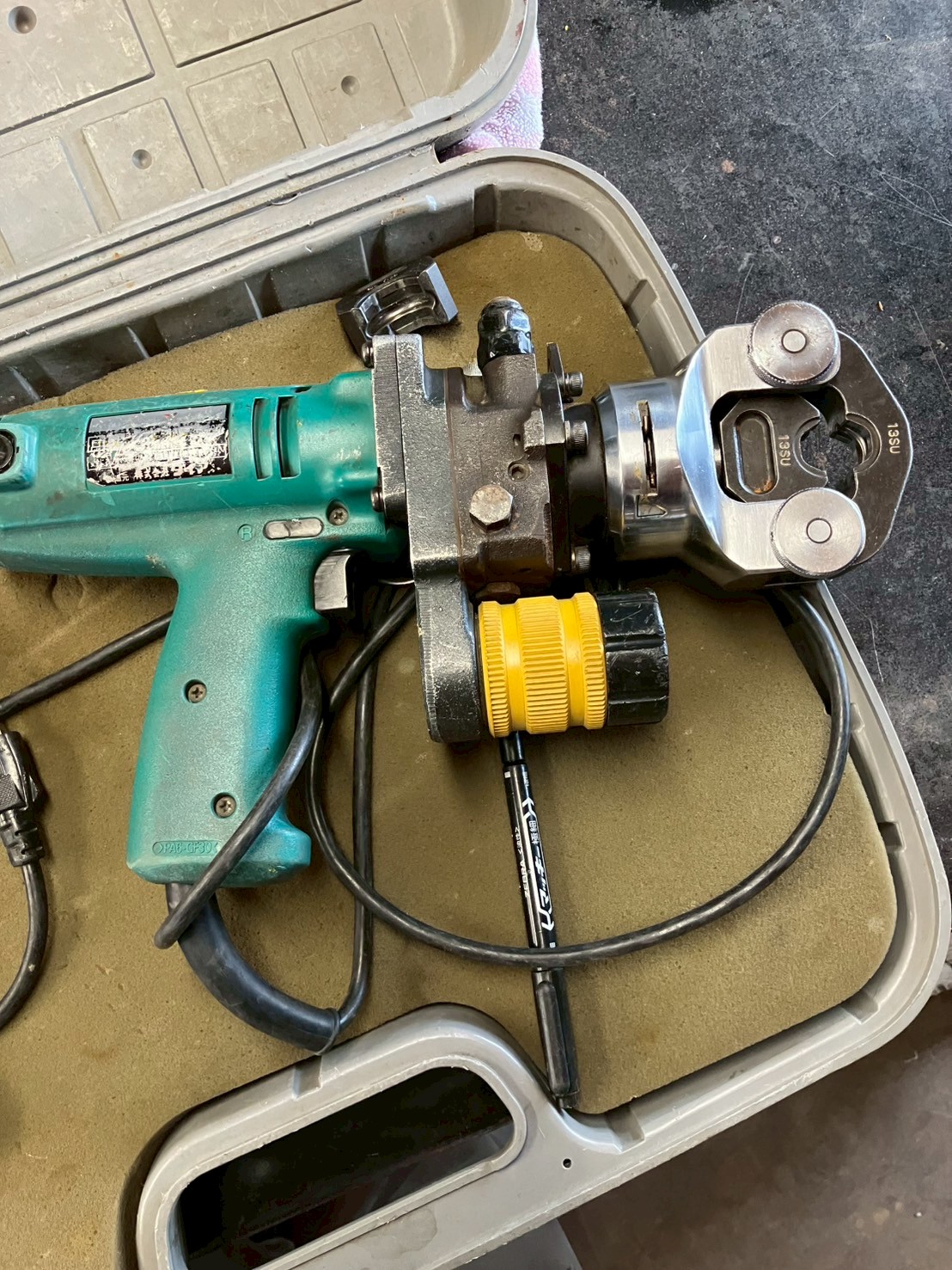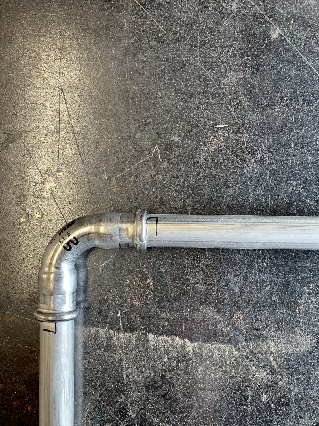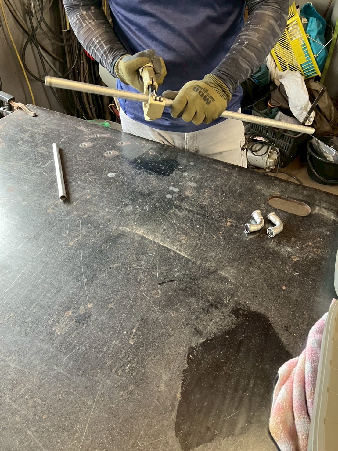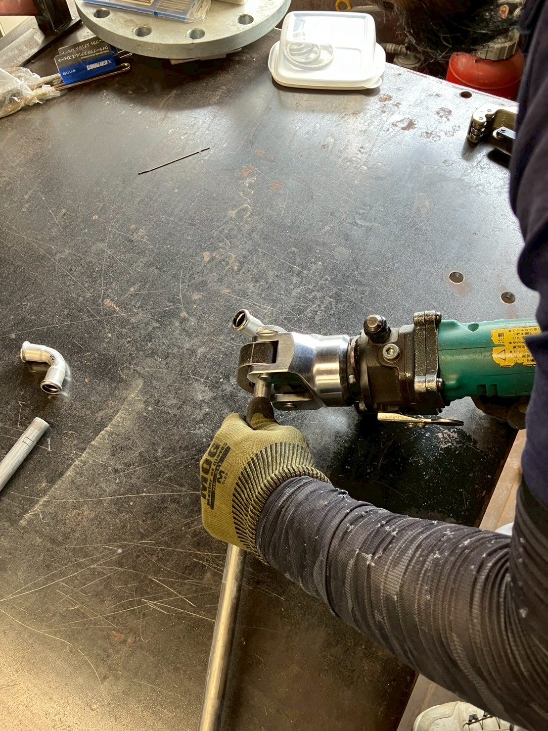 パイプと継ぎ手を差し込み、専用の機械で接続します。